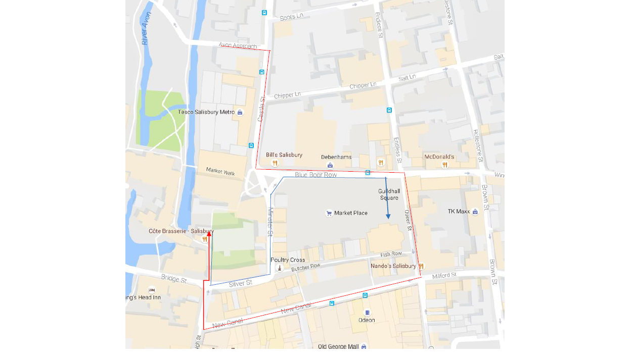 Road closures may affect certain bus routes. If you plan to take the bus, please check timetables on the Salisbury Reds website before starting your journey.